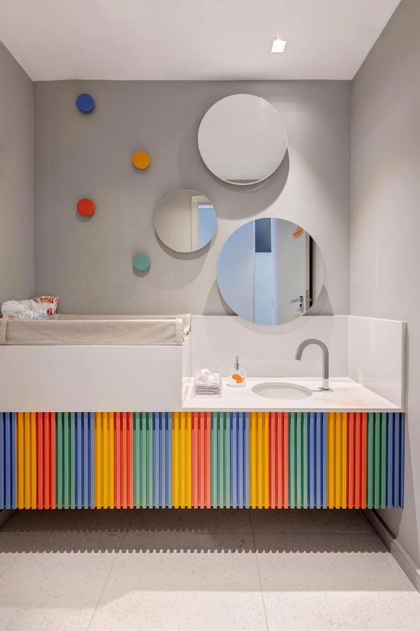 A identidade visual combinou elementos criativos e lúdicos com uma sensação de segurança e conforto. A tipografia principal disruptiva reforça a ludicidade, enquanto a tipografia complementar arredondada proporciona sensação de segurança. O logotipo é envolvido por uma ilustração delicada de mãos, simbolizando acolhimento e cuidado. Elementos gráficos, como ícones médicos ilustrados e bracinhos coloridos, foram usados estrategicamente para refletir o abraço acolhedor da clínica.